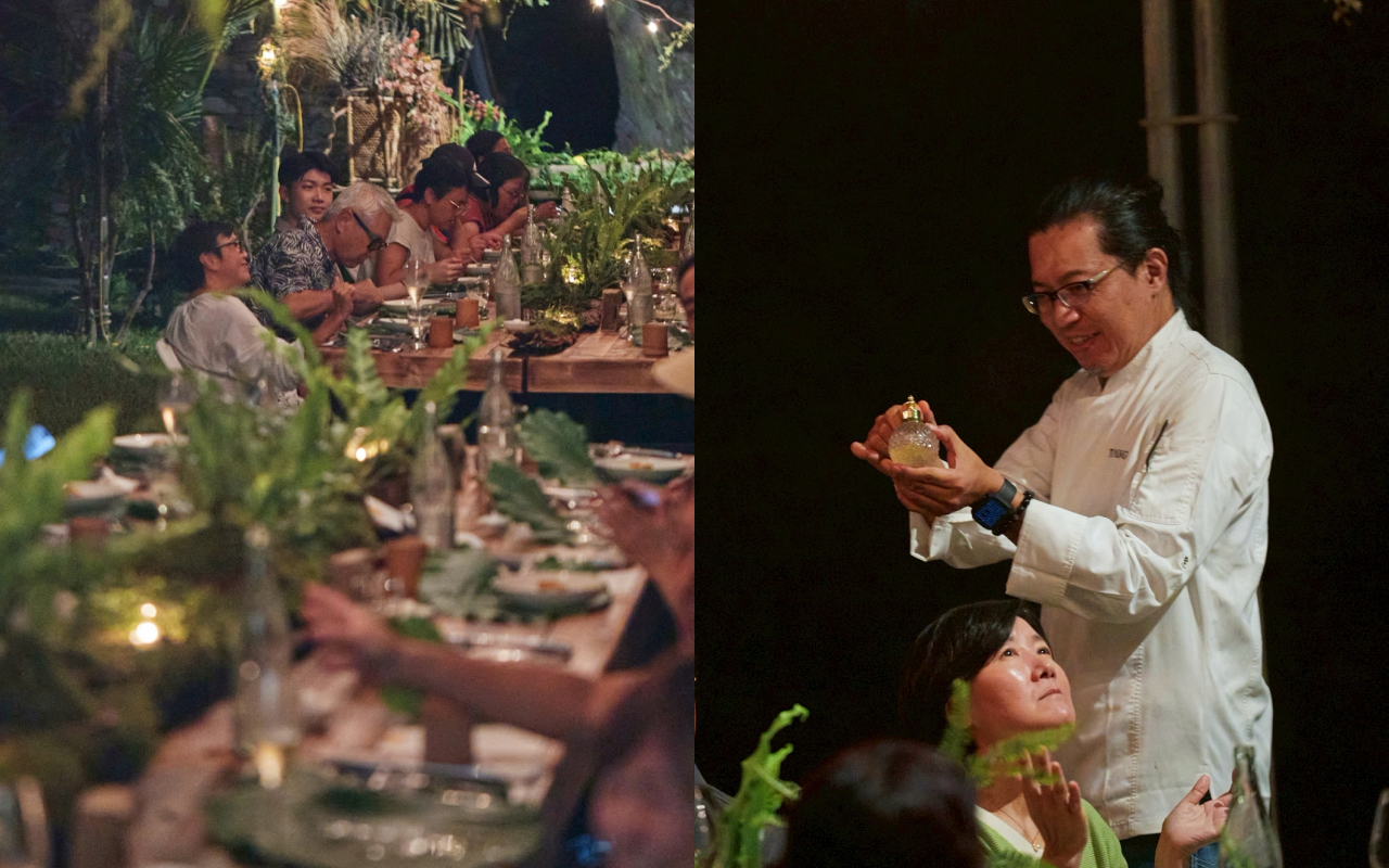 由米其林綠星主廚浩福將氣味體驗設計在餐敘流程中。先是在開場以主題氣味噴灑空間,引導現場賓客開啟想像。在餐宴過程,主廚亦帶來特別的驚喜,賓客不但能享用到氣味配方中使用的相同食材,綜觀整個菜單設計,亦與主題氣味相輔相成,和諧搭配。這是一場從嗅覺、視覺到味蕾的多重感官饗宴,將本來白天活動背景隱藏的氣味,具象化在賓客面前。