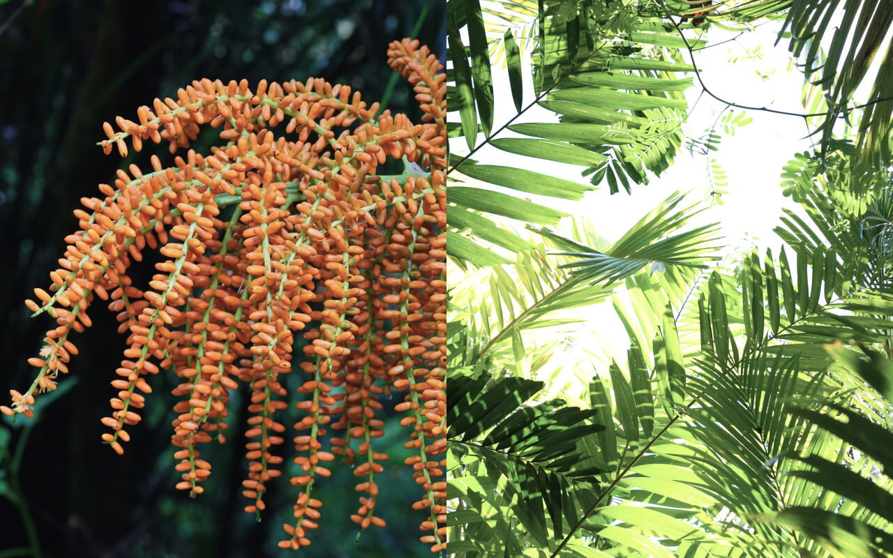 踏尋氣味的來源,原來那是來自山棕花的芬芳。越晚越濃郁的山棕花,利用氣味吸引昆蟲,鳥獸隨之而來,因此對獵人來說,夏季即是豐收的季節,而山棕的花香即是狩獵的訊號。